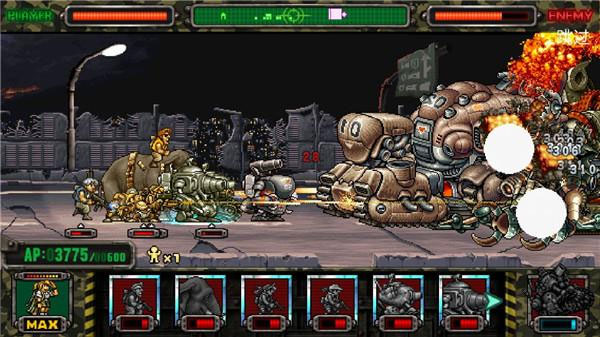 合金弹头进攻相信大家都几乎玩过吧,它承载着我们童年最有趣的时光,而现在随着游戏的不断发展,现在也是迎来了全新的进攻,作为一款街机风格的动作手游,同时最为合金弹头的第二个版本,在这里面的画面依然延续了合金弹头传统的美满风格,人物依旧搞怪,场景与武器依然带着浓浓的二战风,每个地图关卡场景都完美的进行了还原,背景音乐以及音效也是儿时熟悉的味道,相信对于一些老玩家的来说看上去便会对深深的吸引的。