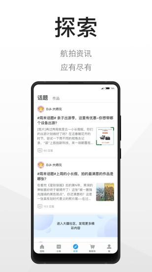 DJI大疆商城,大疆系列无人机官方app,在这里你可以轻松搜索到各种大疆系列无人机产品,每种产品都有详细的性能说明与使用指导手册,还可以在线浏览航拍效果图,有需要的用户可以下载使用!