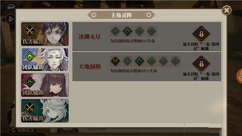 3、而第二个角色白泽主要是增加出战镜灵的生命值,也就是说这名角色比较适合一些反伤流的阵容,在反伤阵容中白泽的生命值加成效果能有更大的优势。