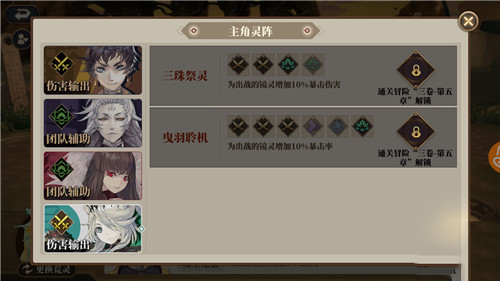 5、四名角色则增加了暴击伤害和暴击率,这个效果比较适合一些爆发型的输出阵容,比如说九尾狐的AOE队伍中带这名角色就更合适。