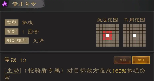 高倍率两格范围AOE,就倍率而言几乎是早期能入手的技能里倍率最高的一批了,适合所有近身骑兵将,专走秒杀路线。唯一的缺陷在于没法对着空地释放,必须跟人脸贴脸,也就意味着会吃反击,也很难直接从安全区域切入秒人。需要配合再动或者后续的加移动力的机制才能完全发挥。