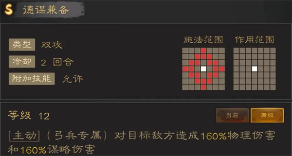 基于目前的AI机制,所有3格输出的技能都不会太差,德谋兼备受限于当前没有可用的智武双高的弓将,与江表虎臣几乎没啥差距,加之获取难度大,一般不推荐换,直接用江表虎臣即可。