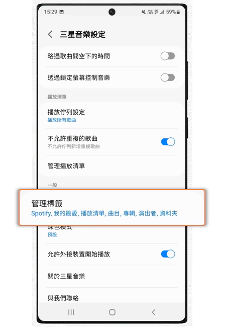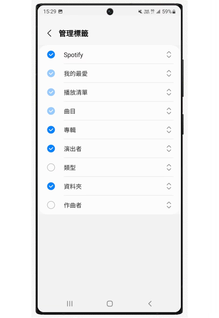 如何调整三星音乐管理标签的顺序