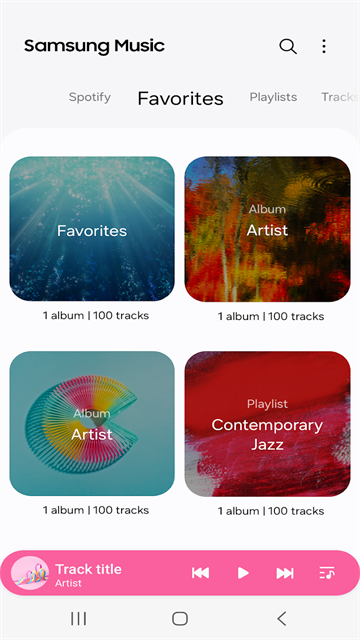 4三星音乐显示Spotify播放列表的推荐。您可以通过 Spotify 选项卡找到 Spotify 推荐音乐并搜索您喜欢的 Spotify 音乐。