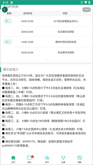 3、点击俱乐部进入详情介绍页面,有着详细的活动时刻表