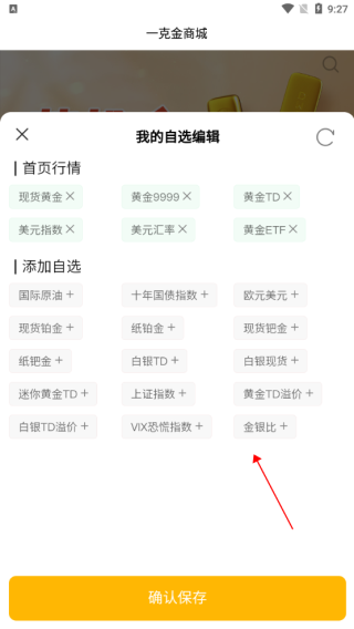 2、即可进入自选编辑面板,可以将自己想要获知的行情添加,方便查看;