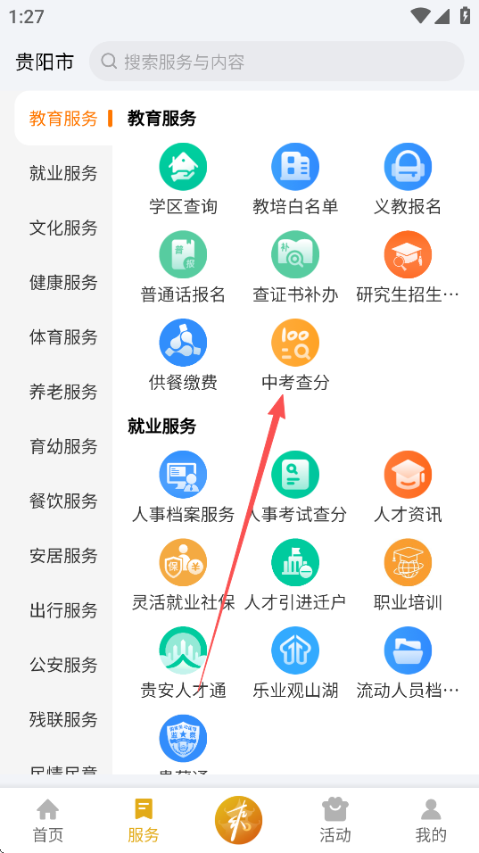 学生供餐缴费、学区查询、教培机构查询、中考查分、义教入学报名等服务功能;