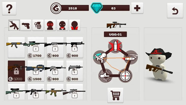 3、武器选择,提供了大量的武器装备资源,通过装备各种武器,还能提升战斗能力。