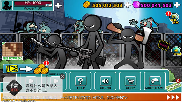 5、在团队战斗中,最多可以出现四个火柴人角色,同时我们还可以对火柴人不断的升级,超过600个等级,200种不同的敌人和层出不穷的大BOSS,在等待着大家的挑战,可玩性极高。