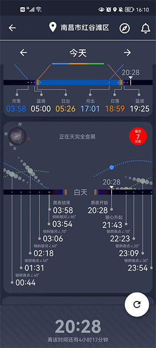 2、夜空摄影:黑夜开始和结束时间,银河中心在天空的位置和时间,波特尔暗空指数。