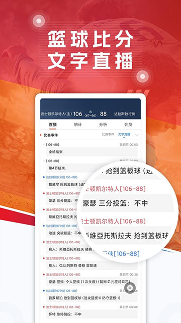 2、篮球比分,文字直播