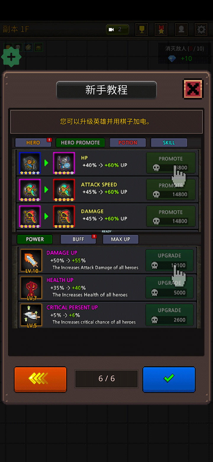 5、每次击败敌人都能获得金币奖励,这些黄金可用于提升英雄等级,加强整体战斗能力。
