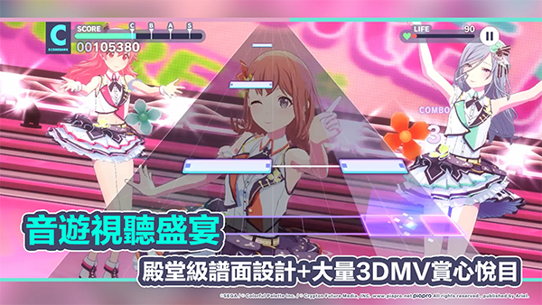 与谱面同步进行的3D LIVE表演,感受演出角色360度的热情与梦想!