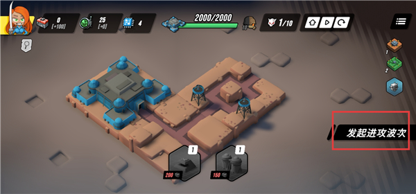 5、放置好全部的防御塔后,点击【发起进攻波次】。