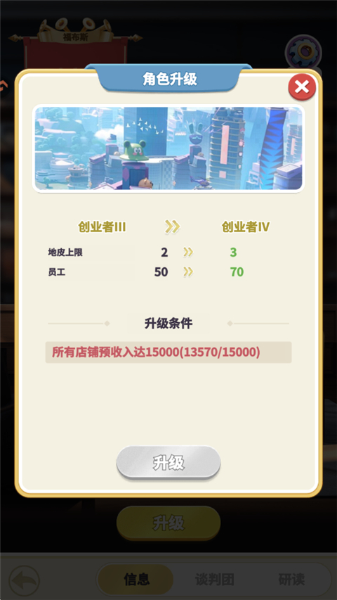 8、当玩家的店铺达到一定的收入即可升级你的等级!