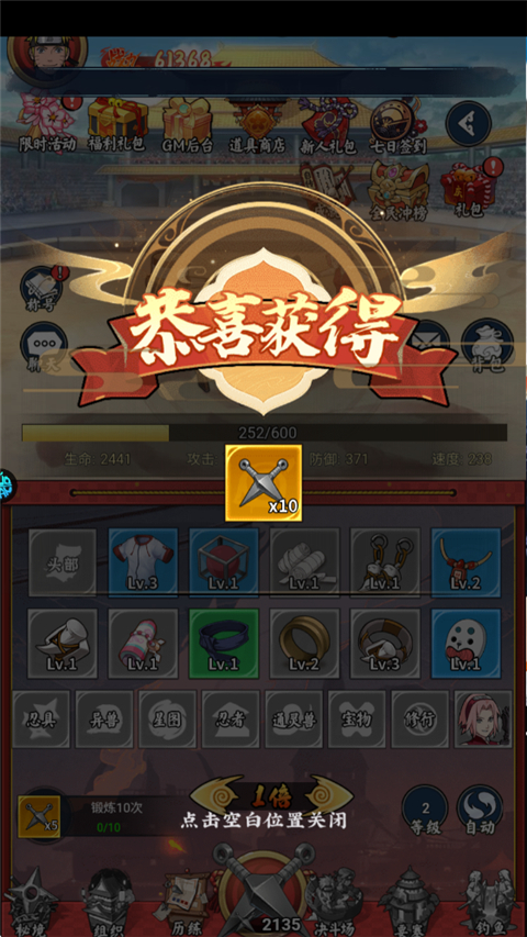 创角即送64800金币+自选传说忍者+极品橙色异兽。