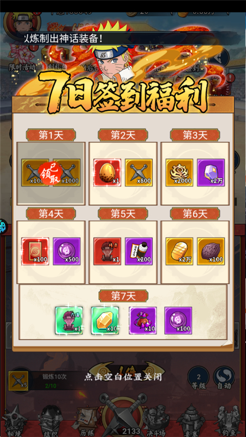 次日送红色异兽自选,5日赠送传说忍者,7日赠送传奇忍者。