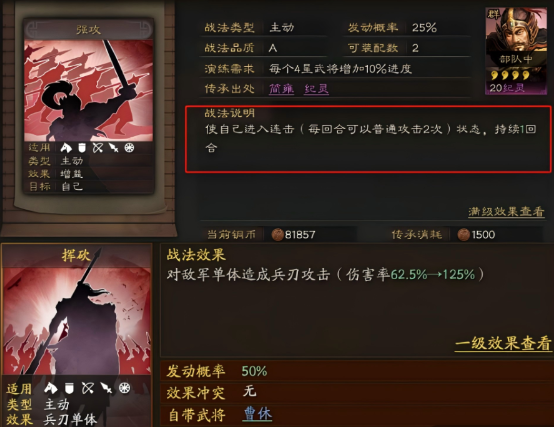 可以通过提升战法等级增加伤害输出,级别越高的战法需要的战法经验越多,战法经验的获得是来源于用铜币招募再到转换成战法经验。