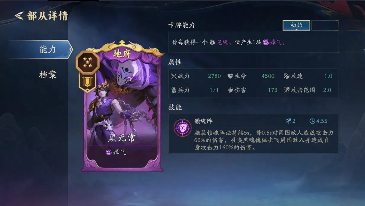 阴兵→ 每「回合结束」产生瘴气,触发鬼将技能,为战士部从提供数量加成
