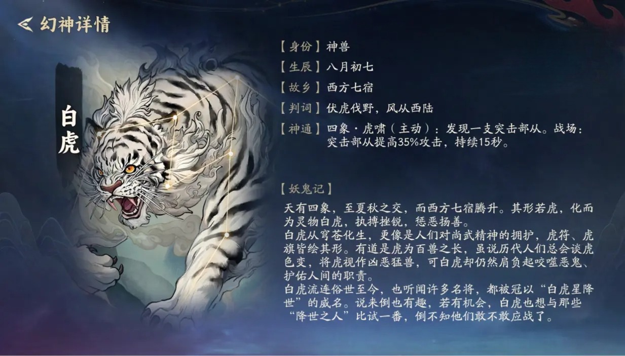 循此思路,【中立】部从白虎如果搭配【妖界】的消费流玩法,既可以让妖界首领变成突击部队、妖界的消费特技还能增加突击部从数量、再加上幻神神通带来的突击部队增益BUFF。