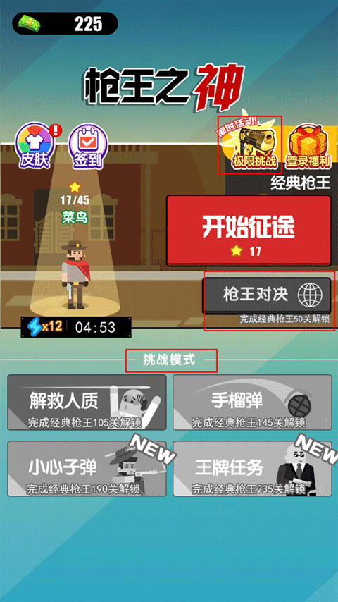 3、完成相应数量的关卡就能解锁枪王对决、以及调挑战模式等关卡挑战。