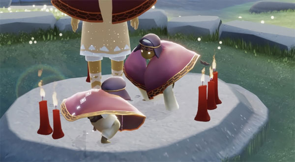 在探索王国的时候,旅人会在各个地点找到泛着蓝光的先祖灵魂。跟随灵魂的记忆碎片,旅人将了解更多关于先祖时代的历史和故事。用蜡烛点亮石像后,旅人会将先祖灵魂返送回天际。