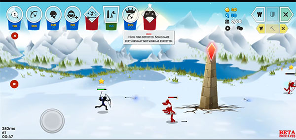 第九关:巨人关卡,先养两名剑士,操控其中一名跟巨人绕走位,另外一名备用,经济上来后全养弓箭手